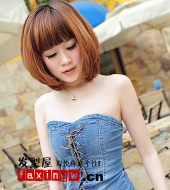 如果你在尋找方臉適合的髮型,那不妨嘗試一下波波頭短髮髮型,發尾部分做內扣的髮型設計,搭配整齊垂直的平劉海,正好可以形成裹臉的效果,小巧迷人的臉型立即顯現。漸進的棕黃染髮顏色使女生髮型更有時尚韻味。