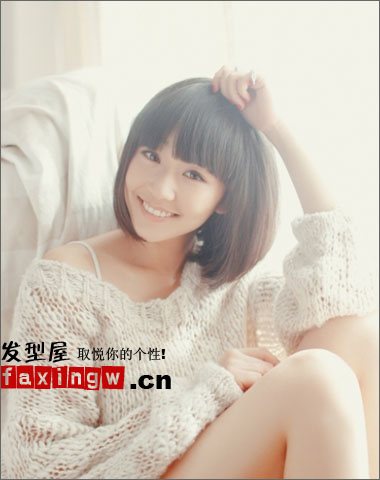 時尚感的齊劉海短髮髮型,小露香肩,清新可人。