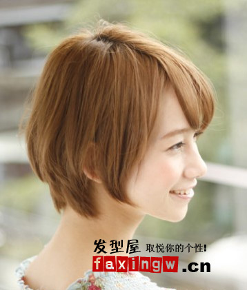 斜劉海搭配上簡單的短髮造型,顯得清爽且感覺簡單。