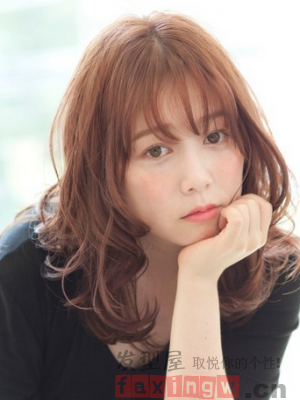微卷的中長發設計,與偏分的劉海搭配,輕鬆達到了顯瘦的效果,提升了整體的氣質,顯得十分的好看,棕黃色的染髮也顯得時尚靚麗。