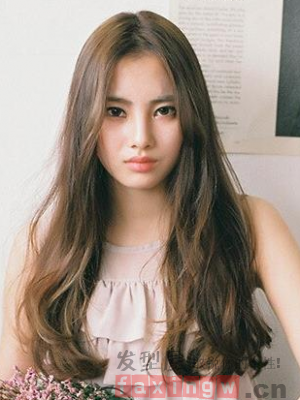 微卷的長髮隨意的披散下來,搭配上中分的劉海,勾勒出精緻的臉型,顯得很有女神范,棕色的染髮也顯得無比的時尚。