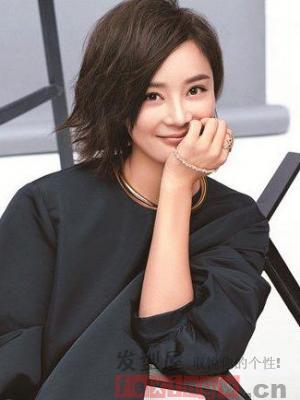 袁姍姍這款微卷燙髮搭配上深色的染髮,凸顯出白皙的臉蛋,看起來十分的洋氣,這款短髮很好看喔。