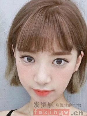 齊劉海搭配齊嘴短髮,將臉頰處的頭髮全部別於耳後,清爽又乾淨,特別的有小女生感,精緻的五官也更加突出,不過圓臉的妹子要謹慎。