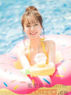 空氣劉海的丸子頭髮型格外適合這個季節和髮際線比較高的女生,笑起來眼睛彎彎如月牙,俏麗的美少女總是格外甜。