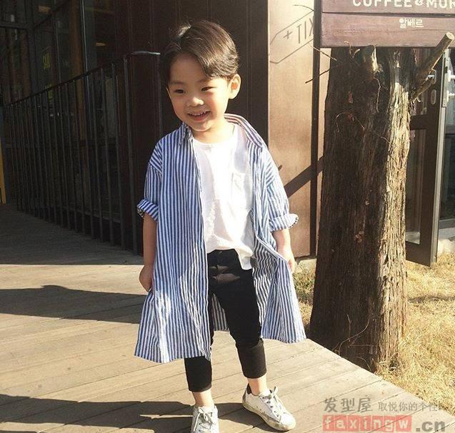 中分髮型,微微燙過,顯得很有質感。再看這身搭配,簡直就是帥呆了。小大人的裝扮,給人一種與眾不同的感覺。稚嫩得來又帶有幾分成熟的感覺,這樣的小孩看上去其實挺懂事的,很讓人放心。
