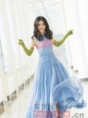 中分長直發兩邊頭髮都別於耳後,搭配抹胸長裙,仙氣十足,甜美又大氣,愛笑的女孩果然運氣不會太差,而且動靜皆相宜。