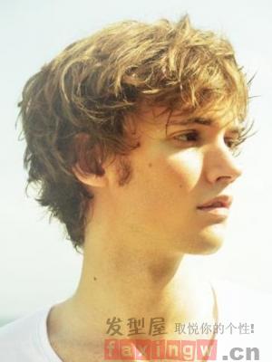這款帶有飽滿感的厚重的小捲髮短髮採用亞麻色發色進行渲染,發色也是決定一款髮型的時尚程度,凌亂的劉海設計加上輪廓分明的臉型給人十足的酷帥感。