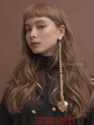 棕色長髮自帶幾分女神氣質,那蓬鬆的捲髮設計也是非常的令人心動,搭配著一款時尚的眉上劉海髮型,讓整款捲髮髮型更多幾分的時尚俏皮感。