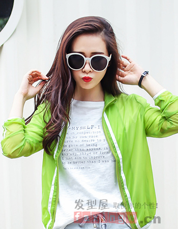 時尚的棕色染髮一直以來都是女生們的最愛,再配合這種一九分式的長捲髮造型設計與一副簡單的墨鏡相搭更添十足潮流氣質感。