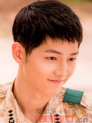 這是一款很受男生們喜愛的宋仲基的短劉海髮型,陽光帥氣的笑臉,搭配上一身軍裝,更顯陽光帥氣。