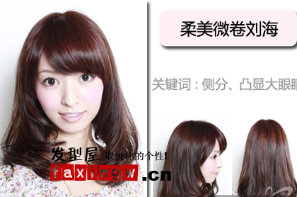 劉海特色:短劉海和發尾一樣做了微微的卷度,讓人擺脫呆板、土氣的形象,馬上變得有神采、有氣質。微微有點側分,露出點光潔的額頭,會讓你的眼睛輪廓更加凸顯出來,而且靈動有神。