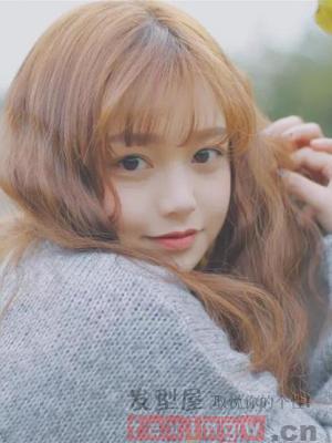 蓬鬆的燙髮設計,搭配上棕色的染髮,時尚顯白,甜美十足,輕盈的劉海也達到了修顏顯嫩的效果,提升了整體的氣質。