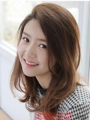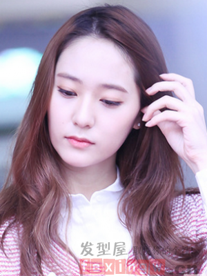 微卷的中長發髮型,搭配上偏分的劉海,輕鬆達到了顯瘦的效果,顯得很有氣質,棕色的染髮也顯得簡單時尚。