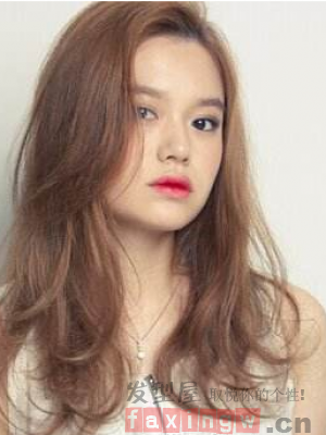 一款棕色的燙髮髮型,與偏分的劉海搭配,時尚顯瘦,輕鬆提升氣質,顯得很有女人味,非常的適合大餅臉的女生。