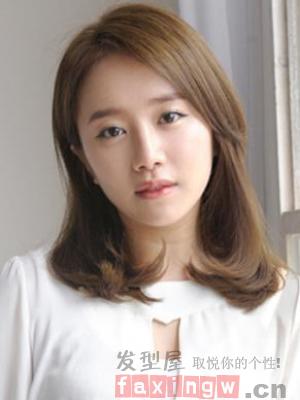 內扣的中長發設計,與輕盈的劉海搭配,凸顯出小巧的臉蛋,顯得很有甜美范,深色的頭髮也增添了幾分時尚感來。