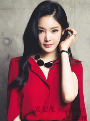 長長的頭髮隨意的披散下來,與輕盈的劉海搭配,襯托出小巧的臉蛋,清新甜美,黑色的頭髮也顯得自然純美。