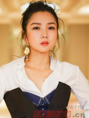 最後一款也是很受女生們喜歡的一款無劉海的簡單盤發扎發,白皙的臉蛋,精緻的耳飾,時尚大氣更吸睛。