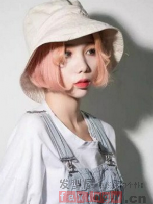 最後一款也是很受女生們喜歡的一款個性染髮的露額頭設計的短髮內扣髮型,白皙的臉蛋,時尚俏皮可人。