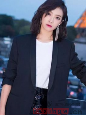 宋茜的這款造型,是比較適合職場妹紙的,幹練筆挺的西裝,搭配上斜劉海的蓬鬆燙髮,時尚又幹練。