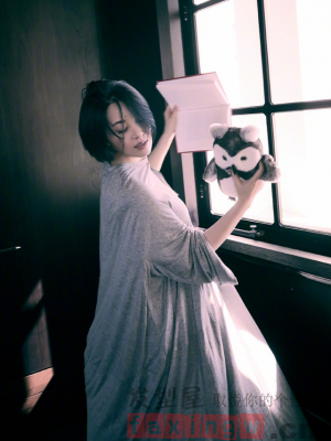 許晴髮型將乾淨利落之感呈現在我們眼前,很好的把我時尚潮流氣質。她身穿灰色寬鬆長裙,手抱玩偶赤腳站在窗前跳舞,迎著晨光,畫面十分唯美。寧靜的氛圍是最好的修飾女神獨有的氣質。