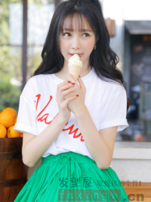 白色T恤搭配綠色長裙,梳一個空氣劉海的長捲髮型,再扎一個小辮,坐在小院前舔一口冰激凌的,這就是夏天該有樣子啊!