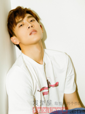 鬢角鏟短後,搭配白色襯衫整個氣質更為乾淨和陽光,時尚燙髮和及眉劉海為男生的個人魅力加分不少。