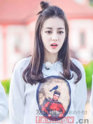 丸子頭絕對是熱巴大愛的髮型之一,這款半扎爽丸子頭也是十分的俏皮可愛,留一點龍鬚劉海可以起到修顏的作用。
