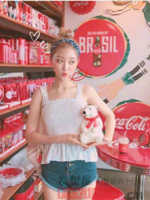 將頭髮全部盤起,紮成一個高高的丸子頭,如果你覺得單調的話可以來個髮帶裝飾一下,穿一身清涼的衣裳,更加的青春陽光,盡顯甜美可愛氣質。