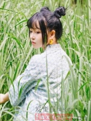 慵懶感的日系風丸子頭髮型,保留了未紮起的髮絲,因此整個髮型比較有飄逸感,給人一種衝破束縛的自由感,慵懶又青春,灑脫而時尚。