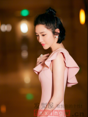 高扎丸子頭有著視覺上拉高臉型的效果,更多的還充滿了青春活潑的氣息,一款簡單的高扎丸子頭能給人帶去更多的清純感,粉色的連衣裙都是慢慢的少女感。