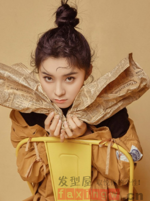 高丸子頭髮型也能呈現出最時尚的氣息,在頭頂上運用了一點的燙髮技巧,有著更多好看的紋理,那高高的丸子頭在視覺上還有著修顏的效果,給你展現更多的魅力的一面。