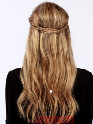 這款歐美編髮像花環一般的編起,金色的長髮上帶著更多的優雅氣質,帶著一點的捲曲度,給你們帶去更多的時尚魅力,同時這款簡單又帶著點的優雅感,女神范十足。