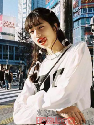 最簡單普通的一款齊劉海髮型,依舊是所有女生都非常喜歡的一款髮型,紮起兩條簡單可愛的馬尾辮來,更能感受到那一份的清新少女氣質,簡單幹淨又青春。
