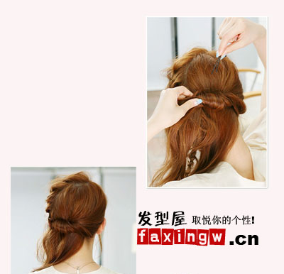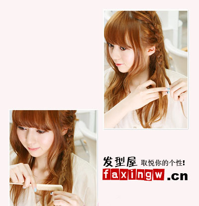注意:在編好三股辮的時候可以適當把頭頂的頭髮輕輕拉一拉,以做出蓬鬆自然的感覺。