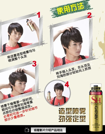 產品效果:使用造型噴霧之後,在水霧完全乾燥之前,可以隨意抓捏頭髮,打造各種流動立體髮型,長短髮皆宜,不會有白屑產生。等待造型噴霧完全乾燥之後,所造髮型可持久固定。