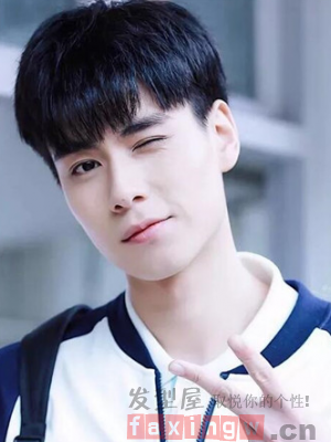小臉男生適合什麼髮型呢?這款深色系的斜劉海短髮髮型,搭配上胡一天局你秀的臉龐,俊秀帥氣更迷人。