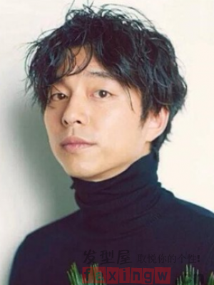 一身黑色的高領的上衣,搭配上一款自然黑色的碎劉海的蓬鬆微卷短髮燙髮,乾淨的臉龐,更顯儒雅。