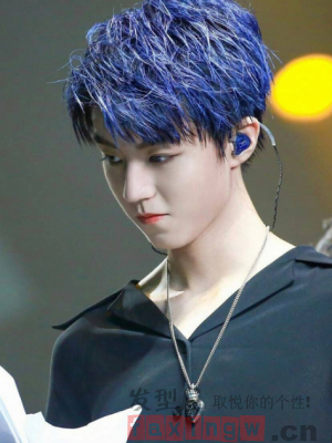 韓版男人的雙色染髮比擬多,這款算是很出彩的一款染髮髮型了。男人亮紫色的頭髮和亞麻棕色的頭髮一起染髮,棕色是大眾色系,而紫色則是在發頂上,間歇的做挑染。