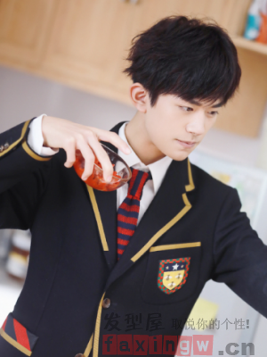 學生裝的易烊千璽有著當代中國少年的熱血,斜劉海的微燙髮讓少年愈發的眉目清朗,有你們,中國就有希望!