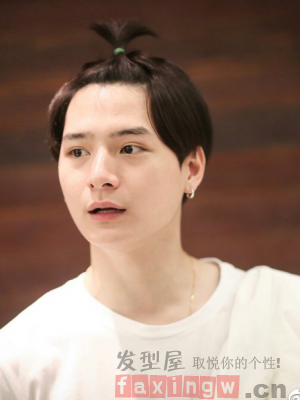 顏值高的男生真的是什麼髮型都能hold住啊,將劉海全部紮起成一個蘋果頭造型,額前沒有任何頭髮的遮擋,露出一張英俊精緻的側臉,這樣的乾淨清爽的氣質真的讓人很舒服。