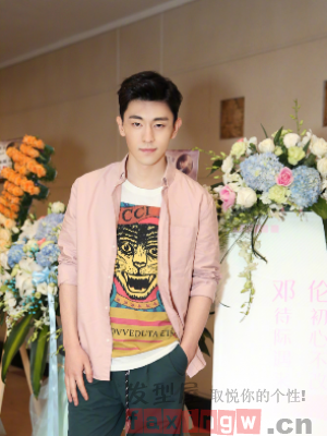 短髮總是很受歡迎的,不用太多的打理,這款時尚的上梳劉海短髮更多散發著夏天的青春活力,兩邊鏟短也是有著乾淨清爽的氣息,穿著粉色襯衫的鄧倫就像是一個青春陽光的大男孩。