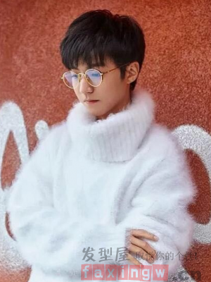 白色毛衣與黑色波波頭髮型的搭配,更顯幾分的青春氣息,這一款的波波頭髮型帶著一點打薄的設計,不會太過悶熱,戴上一副眼鏡更為斯文帥氣。