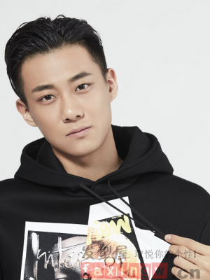 中分的黑色短髮,劉海向兩邊梳起,沒有著劉海的遮擋,那一張英俊帥氣的臉龐更為清爽乾淨,仿佛一個青春陽光的鄰家大男孩,給人更多的美好青春幻想。