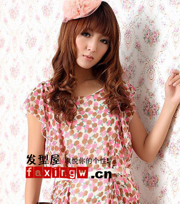 整個捲髮髮型看起來都很圓滑,很顯乖巧與淑女喲,半月劉海展現出水晶女孩的純真美麗,一臉清新的妝容恰好與這個春季的甜美融合在一起。