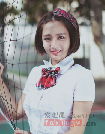 比較甜美風格的一款齊耳短髮造型,氣質的中分輕鬆打造出別致的氣質感,發尾形成微微內扣,短直發輕鬆打造出清新氣質感,髮飾的點綴更顯甜美。