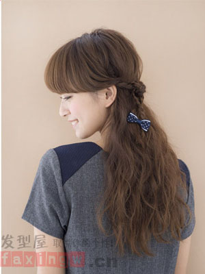 從正面看,或許美眉們沒出來什麼,不過看看背面效果圖,美眉們是不是有種恍然大悟的感覺啊,棕色的中長捲髮髮型,打理成半扎發的造型,搭配小髮飾的點綴,更顯甜美迷人。