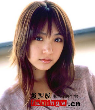 剪得整齊的劉海,凸出大大的眼睛,眼睛大的圓臉mm最適合這款劉海了。齊劉海直發,把圓臉女孩的可愛和天真表現出來。