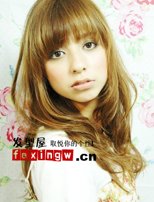 2、金亞麻色中長髮捲發,潮流有個性,細碎而有弧度的劉海,很柔美而且能很好的修飾臉型,亂亂的髮絲,慵懶中凸顯了柔美的感覺。