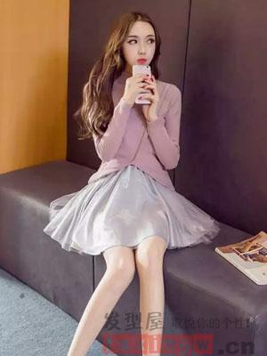 女生中分髮型,自然的長捲髮型,給人十分小女人的感覺,尤其是這身打扮,讓人覺得很有公主的感覺。錐子般的臉蛋,散發出秀美的氣質。