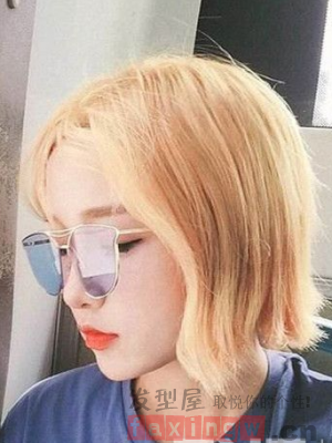 金色的發色是特別的搶眼的一款發色,中分短髮髮型,齊脖短髮完美修飾臉型,發尾一道外翹完美展現出女孩子的機靈感。